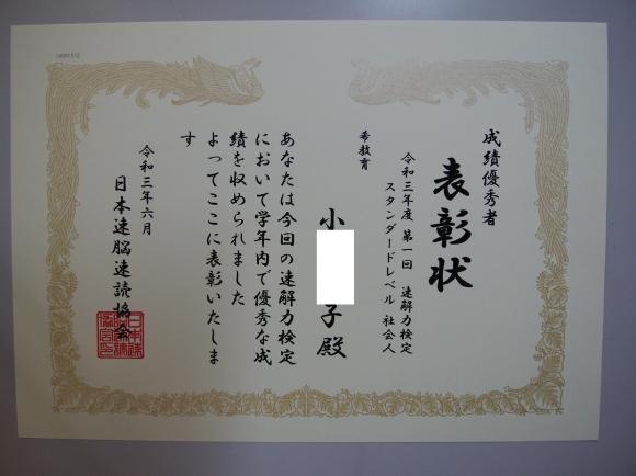 2021年08月27日 金曜日 速読:速解力検定で3名の方が優秀賞 ( のぞみ教育通信 ) |