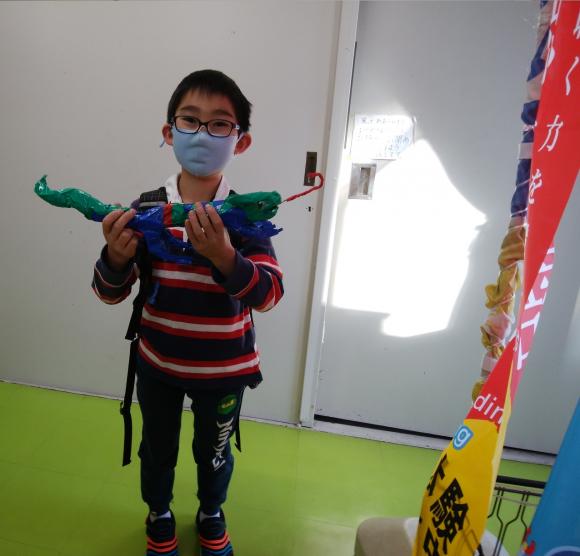 2022年03月24日 木曜日 小1かず君がガムテープでカメレオンを作りました ( のぞみ教育通信 ) |