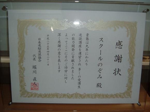 TOP›のぞみ教育通信›速読協会から「感謝状」を頂戴致しました。