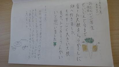 今日3年生ぜんいんで今まで育てた大根をしゅうかくしに畑へ行きました。