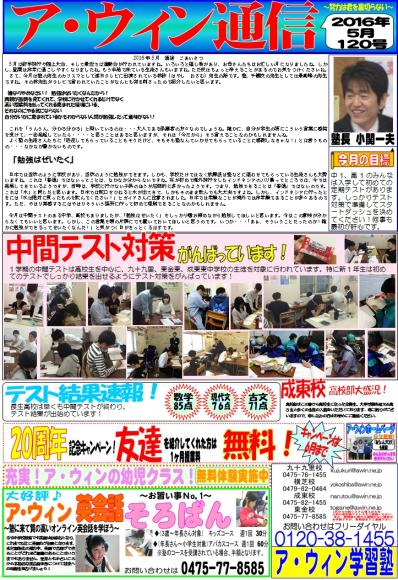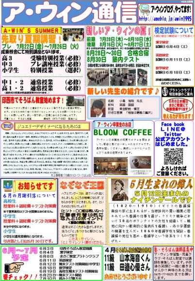 2016年05月31日 火曜日 ア・ウィン通信2016年5月 ( 教室からのお知らせ )