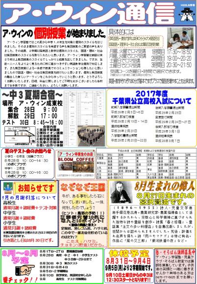 TOP›教室からのお知らせ›ア・ウィン通信2016年8月