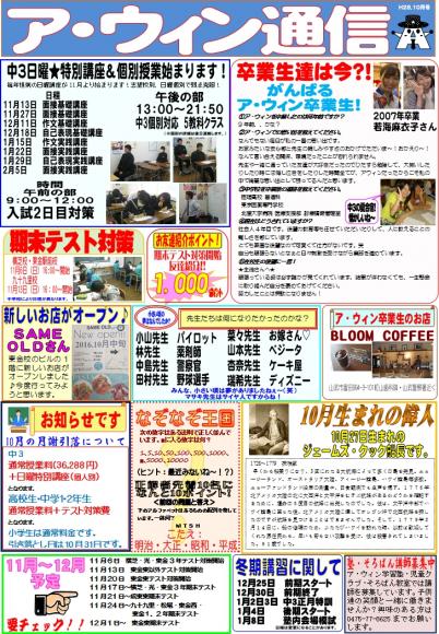 2016年11月13日 日曜日 2016年ア・ウィン通信10月 ( 教室からのお知らせ )