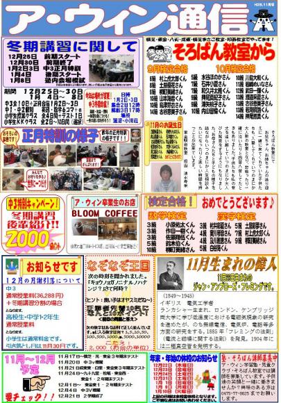 TOP›教室からのお知らせ›2016年ア・ウィン通信11月号