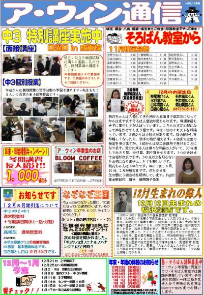 ア・ウィン通信 2016年12月 ( 教室からのお知らせ )