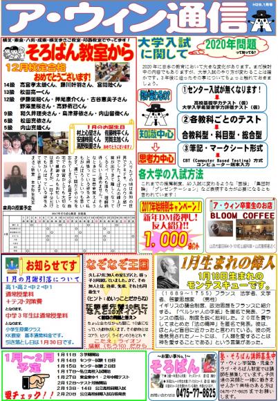 TOP›教室からのお知らせ›ア・ウィン通信2017年1月