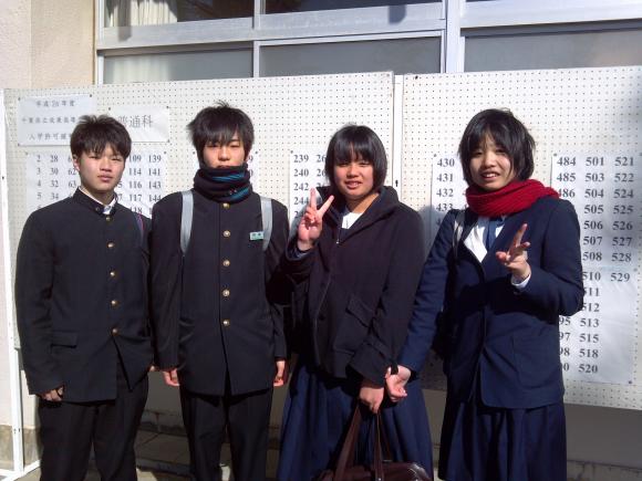 ・第1志望にしかも前期で受かることが出来てうれしかったです。自己採点が最悪で落ちるかと思いました。ゆっくり考えれば分かった問題もあって不安がとても大きかったです。
