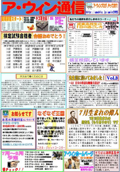 2015年09月22日 火曜日 ア・ウィン通信7月号 ( 教室からのお知らせ )