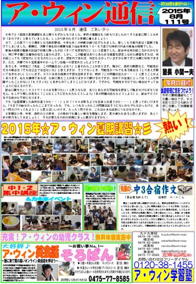2015年09月22日 火曜日 ア・ウィン通信8月号 ( 教室からのお知らせ )