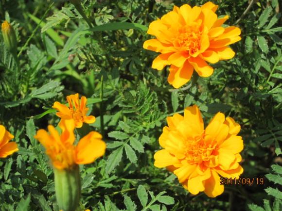 数日前の夜、帰宅途中の公園の茂みからスズムシの鳴き声が聞こえ、思わず足を止めました。 耳を澄ますと、2〜3匹いる様子。 久しぶりに聞いたスズムシの鳴き声に懐かしさを覚えました。 もしかしたら、それこそ子どもの頃以来かもしれません。 スズムシだけでなく、コオロギの声もします。 よ〜く聴いてみると、4種類の虫の音を聞き分けることができました。 公園の中のベンチにすわり、しばし心地いい虫の音四重奏に浸っていました。 明日は彼岸の入りです。 暑さも峠を越える頃でしょう。 台風が近づいています。 12号のときのような被害が発生しないことを祈りつつ・・・ ウチの庭に草花です。
