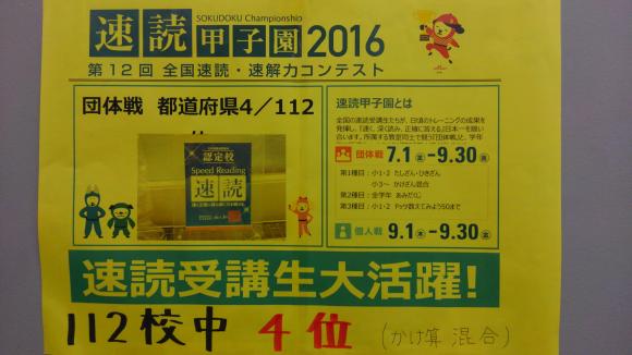先日のブログで、速読甲子園団体戦の