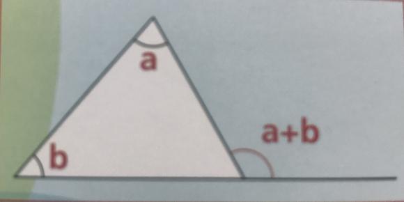 これは三角形において2つの内角の和は隣合わない外角に等しいことを示した「外角定理」のことを指します。