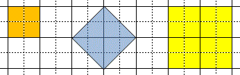 みなさん、こんにちは。 先日のクイズの答えです。 方眼紙を使って面積が 2になる正方形を描くには、この真ん中の 図形のように、斜めにするとうまくいきます。こうすると 底辺と高さが 1、つまり面積が 0.5の三角形が 4つ合わさった 正方形となりますので、面積は 2になるのです。 この正方形の 1辺の長さは 1.41421356... というように、 不規則で永遠に続く少数となり、数学の世界では √2と 表現されます。 では、続けての問題です。正方形を斜めに描くという テクニックを使って、面積が 5になる正方形を描くことは できるでしょうか。(答えは数日後にお届けします)