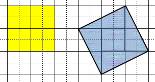 先日の面積が 5になる正方形クイズの答えです。右側の図形の