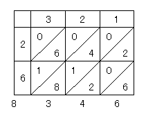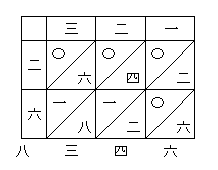 それぞれの積の十の位をマスの左上、一の位を右下に書いて