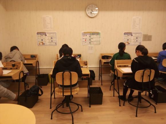 肥田中の中3の生徒たちは、中間テスト前日のため テスト前勉強会に参加し、熱心に勉強しています。 同時に、漢字検定の生徒は、検定試験に取り組んでいます。
