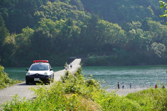 フェリーにて四国へ渡り、四万十川の沈下橋を渡って