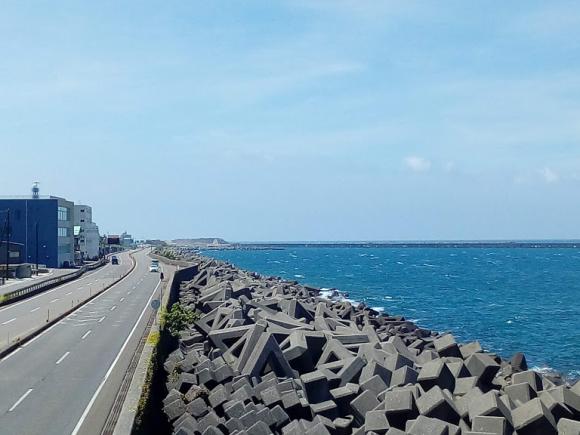 日本海はちょっと白波が立つ程度 でも海風が生ぬるく涼しくない
