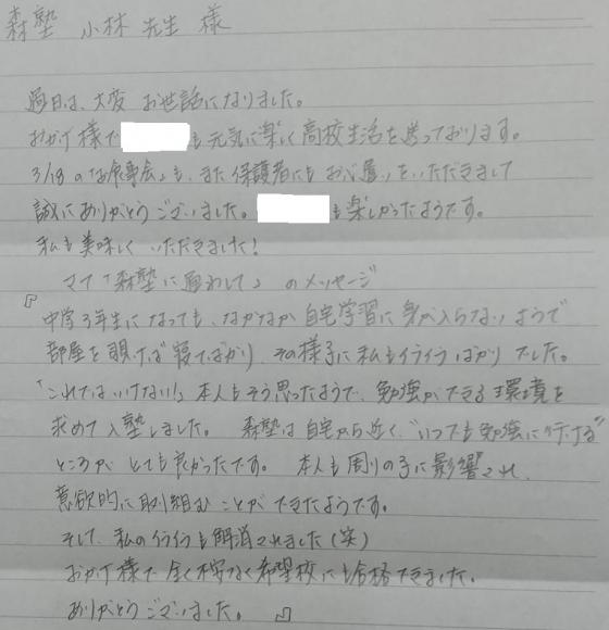 おかげ様で全く不安なく希望校にも合格できました。ありがとうございました。