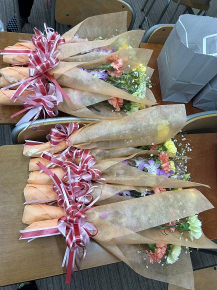 保護者様には感謝の気持ちとして「おお菓子」「花束」「手紙」を渡しました。