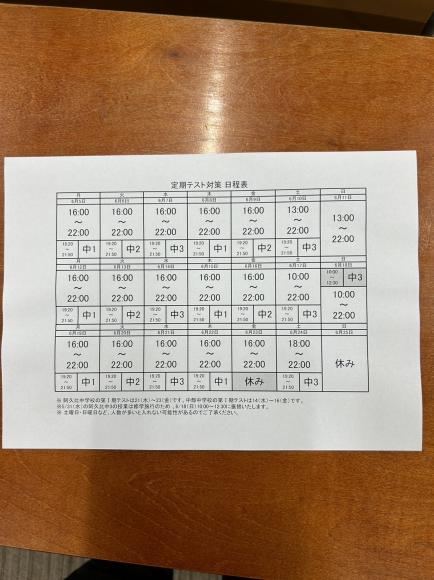 2023年06月05日 月曜日 テスト対策 ( 教室からのお知らせ )