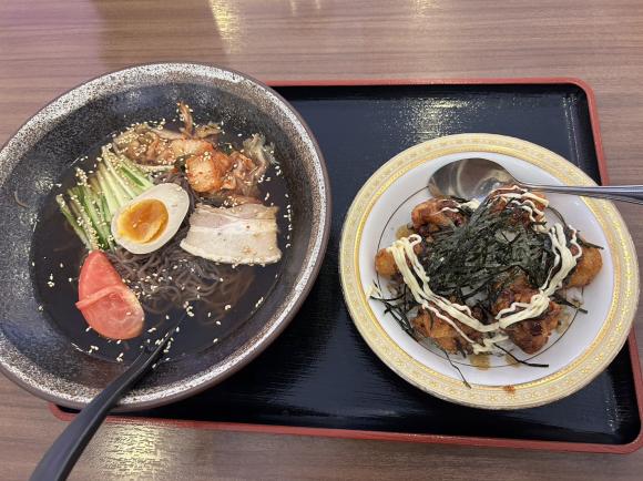 今日の昼ごはんは「そば冷麺」と「からあげ丼」 そば冷麺?初めて聞くなって思って注文しちゃいました。好奇心をくすぐるのは大事ですね。 授業の中でも、子どもたちの知的好奇心を刺激するような話を入れていきたいなって思っています。 今日は何を話そうかな〜🥰 今日も待ってるよ〜