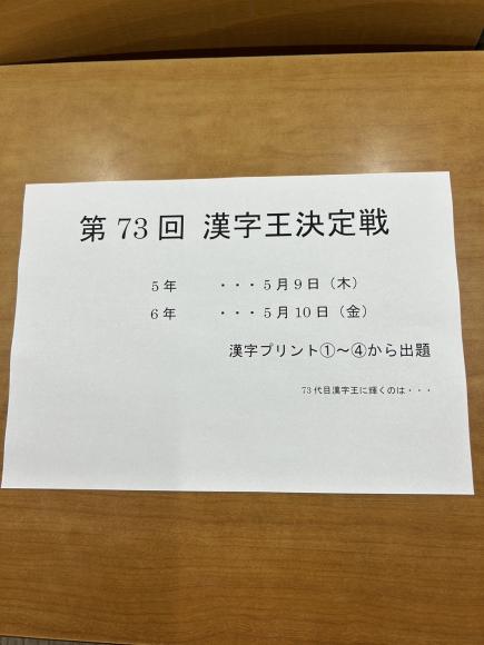 2024年04月23日 火曜日 漢字王決定戦 ( 教室からのお知らせ )