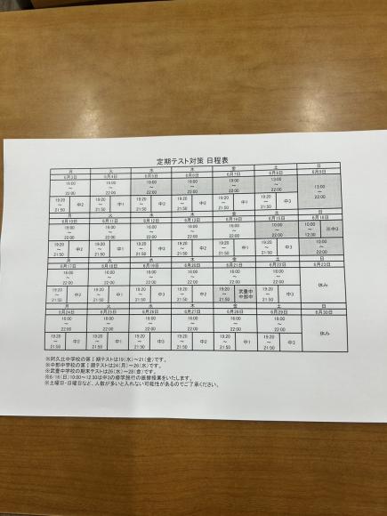 TOP›教室からのお知らせ›テスト対策期間