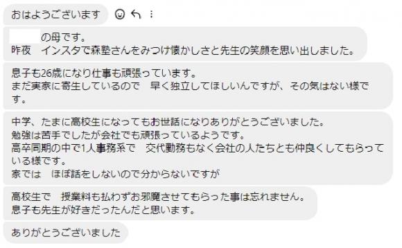 昨夜、インスタで森塾さんをみつけ懐かしさと先生の笑顔を思い出しました。