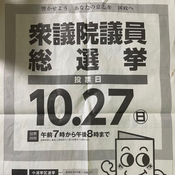 2024年10月21日 月曜日 選挙 ( 森塾日記 )