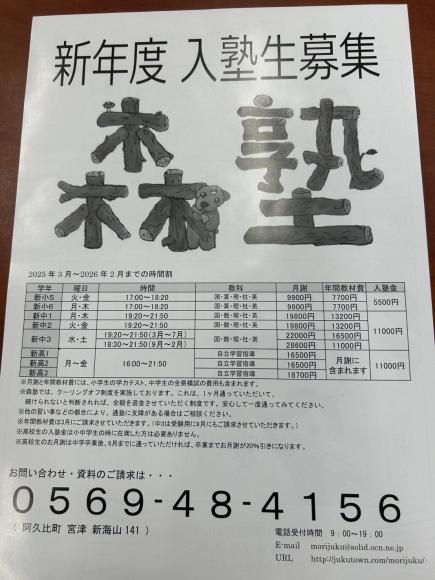 2025年01月24日 金曜日 新年度チラシ ( 教室からのお知らせ )