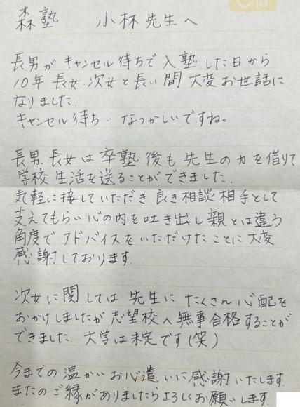 森塾 小林先生へ