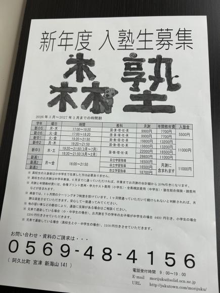 新年度のチラシができました! 昨日、間違えて新年度ではなく、今年度のチラシをあげてしまったのは内緒です🤫(現在は削除済み) さらに今日からは中学準備講座がスタートします🔥 スムーズに次の学年に進めるように、みんな頑張ろう💪 今日も待ってるよ〜