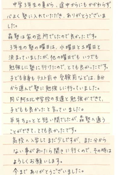 ¡¡¿¹½Î¤Ï²È¤Î¶á½ê¤Ç¤·¤¿¤Î¤ÇÎɤ«¤Ã¤¿¤Ç¤¹¡£3ǯÀ¸¤Î½Î¤ÎÍËÆü¤Ï¿åÍËÆü¤ÈÅÚÍËÆü¤È·è¤Þ¤Ã¤Æ¤¤¤Þ¤·¤¿¤¬¡¢Â¾¤ÎÍËÆü¤Ç¤â¤¤¤Ä¤Ç¤âÊÙ¶¯¤·¤Ë½Î¤Ë¹Ô¤±¤¿¤Î¤Ç¡¢¤È¤Æ¤âÎɤ«¤Ã¤¿¤Ç¤¹¡£»Ò¤É¤â¼«¿È¤â¥Æ¥¹¥ÈÁ°¤ä¼õ¸³Á°¤Ê¤É¤Ï¡¢¼«Ê¬¤«¤é¿Ê¤ó¤Ç½Î¤ËÊÙ¶¯¤·¤Ë¹Ô¤Ã¤Æ¤¤¤Þ¤·¤¿¡£Æ±¤¸°¤µ×ÈæÃæ³Ø¹»¤Îͧã¤ÈÊÙ¶¯¤¬¤Ç¤¤Æ¡¢»Ò¤É¤â¤âÎɤ«¤Ã¤¿¤È¸À¤Ã¤Æ¤¤¤Þ¤·¤¿¡£È¾Ç¯¤Á¤ç¤Ã¤È¤Èû¤¤¤¢¤¤¤À¤Ç¤·¤¿¤¬¡¢¿¹½Î¤ØÄ̤¦¤³¤È¤¬¤Ç¤¤Æ¡¢¤È¤Æ¤âÎɤ«¤Ã¤¿¤Ç¤¹¡£