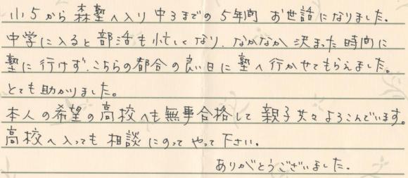 ¡¡¾®5¤«¤é¿¹½Î¤ØÆþ¤êÃæ3¤Þ¤Ç¤Î5ǯ´Ö¤ªÀ¤Ïäˤʤê¤Þ¤·¤¿¡£Ãæ³Ø¤ËÆþ¤ë¤ÈÉô³è¤âË»¤·¤¯¤Ê¤ê¡¢¤Ê¤«¤Ê¤«·è¤Þ¤Ã¤¿»þ´Ö¤Ë½Î¤Ë¹Ô¤±¤º¡¢¤³¤Á¤é¤ÎÅÔ¹ç¤ÎÎɤ¤Æü¤Ë¹Ô¤«¤»¤Æ¤â¤é¤¨¤Þ¤·¤¿¡£¤È¤Æ¤â½õ¤«¤ê¤Þ¤·¤¿¡£