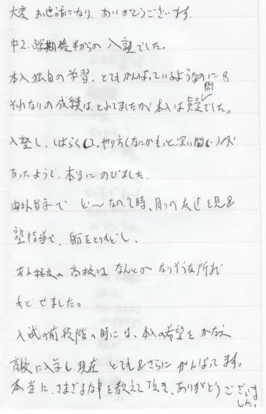 ¡¡Ãæ2¡¢3³Ø´ü¸åȾ¤«¤é¤ÎÆþ½Î¤Ç¤·¤¿¡£ËÜ¿ÍÆÈ¼«¤Î³Ø½¬¤Ï¡¢¤È¤Æ¤â´èÄ¥¤Ã¤Æ¤¤¤ë¤è¤¦¤Ê¤Î¤Ë¡¢¤½¤ì¤Ê¤ê¤ÎÀ®ÀӤϤȤì¤Þ¤·¤¿¤¬Ëܿͤϵ¿Ìä¤Ç¤·¤¿¡£