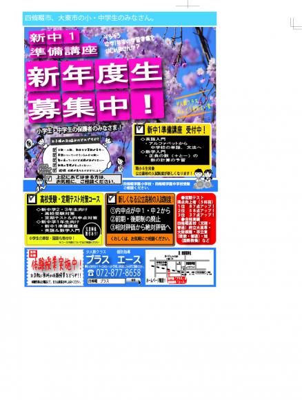 2015年01月17日 土曜日 新年度入塾生受付中! ( 教室からのお知らせ )