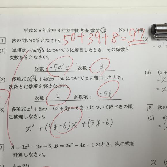 先週、南山中の中間テストがありましたが、先に行われた私立中在籍生徒のテストの結果が返ってきました。中3Aさんは、代数97点・英語100点。入学以来ずっとトップクラスを維持していますが、今年度から成績優秀で特待生になったそうです。この調子で、次回のテストも頑張ってもらいたいです。 高校生では、前回の中間テストで、英語79点のBさんは他の教科も頑張ってクラス順位3位。 同じく英語で92点を取ったC君は、学年順位が728人中26位。ものすごく生徒の多いマンモス高校ですが、英語のみならず他教科も頑張って上位につけています。 これからも成績上位を目指して頑張ってもらいたいです。