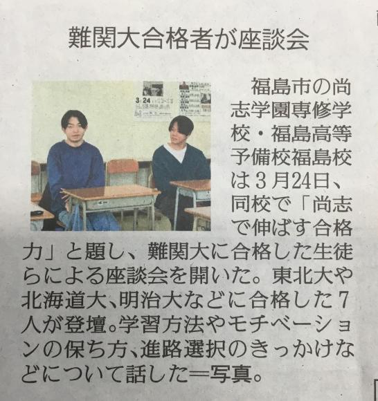 今朝の民友新聞に「合格者座談会」の記事が掲載されました ( 尚志からのお知らせ )
