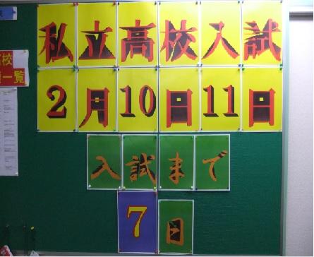 いよいよ私立高校入試まであと一週間。