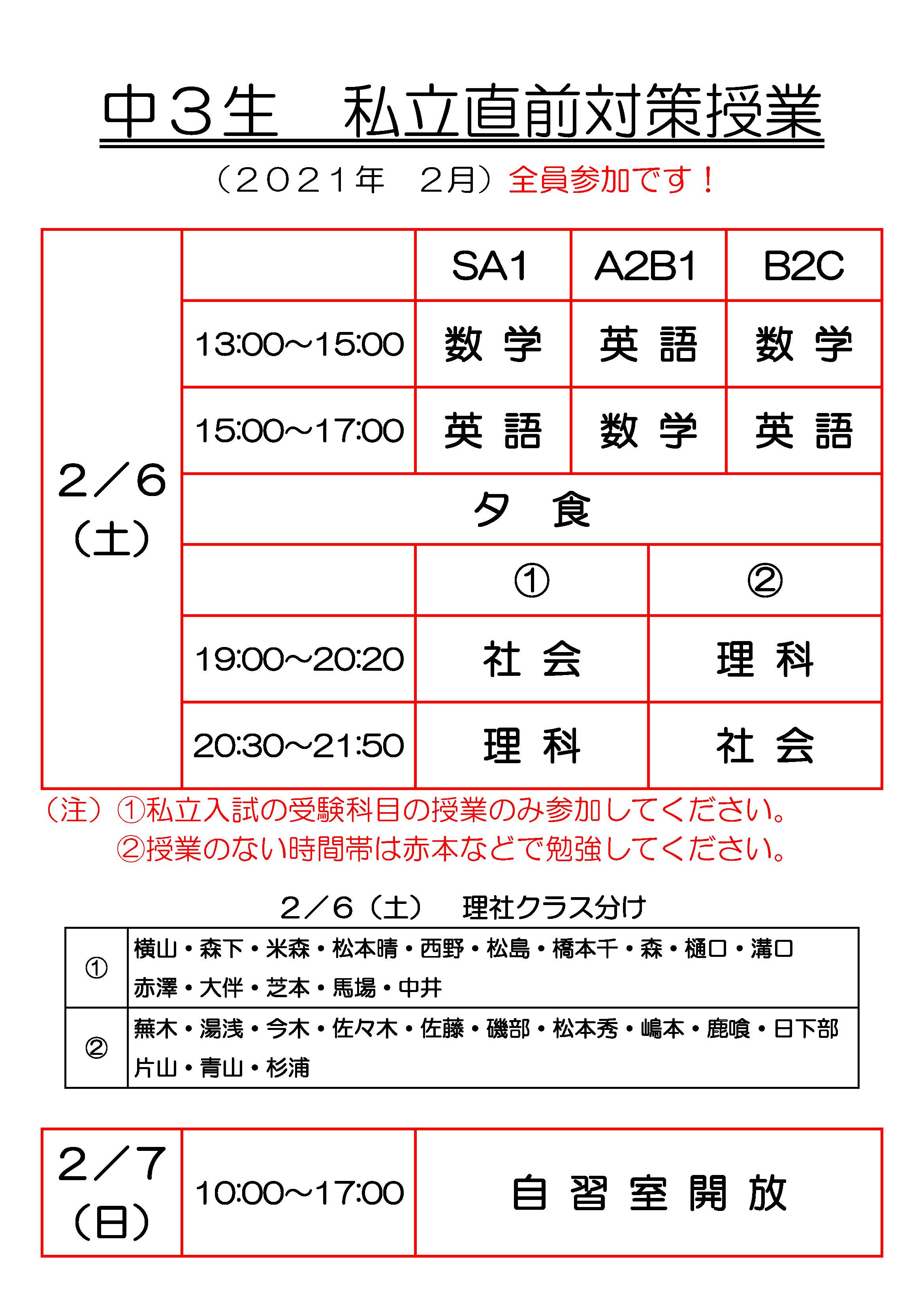 TOP›イベントのご案内›中3生 私立入試直前対策授業